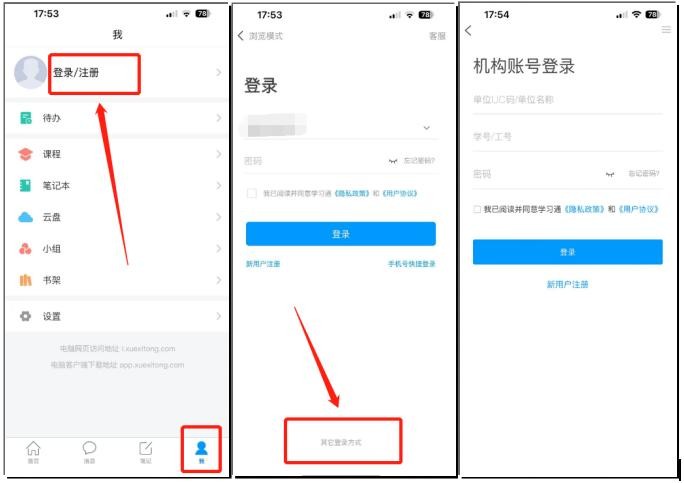 手机端打开学习通app,点击【我】—【登录/注册】—【其他登录方式】【单位UC码】填239021选择【西华大学成教平台】;【学号】填自己学号【密码】为edu@ 身份证后六位(若有X需大写)